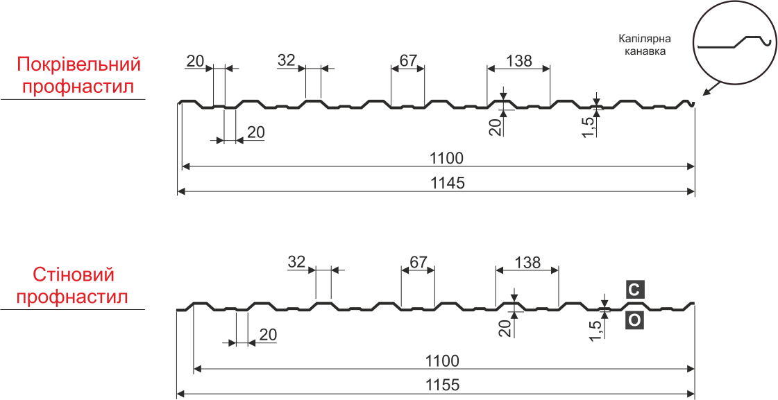 ПРОФНАСТИЛ висотою 20 мм. з підсилювальними ребрами у вигляді хвиль. Призначений для покрівлі та обробки стін складських, комерційних та виробничих об’єктів, а також житлових будівель. Профільовані листи легкі і зручні у монтажі, можуть застосовуватись для обшивки зовнішніх та внутрішніх стін, облаштування парканів та огорож. Профнастил стійкий до вологи, вогню, механічних впливів, а також низьких та високих температур, екологічно чистий. Профнастил відрізняється точною геометрією профілю, відповідністю замкових з’єднань.
