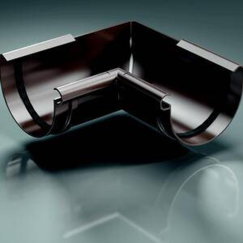 Кут жолоба універсальний 120º-145º призначений для з'єднання двох жолобів під кутом від 120º до 145º. Додатково можна кріпити за допомогою саморізів. Спочатку встановлюються жолоби, а потім одягається і замикається кут. Кут жолоба 120º-145º серії Еліт коричневого кольору виготовляється діаметром 125 мм.